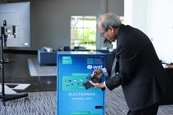 WAT E-waste Collection Bin is suitable for disposal of any electronic devices and accessories that are no bigger than 30cm in diameter, like: