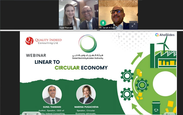 Delivered webinar for Dubai Electricity and Water Authority, “Linear to Circular Economy”, Dubai, UAE, July 2023.